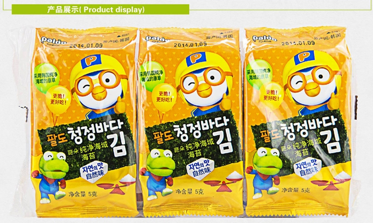 原產韓國的優質海苔,來自巖石岸邊的天熱藻類,充分吸收海水的精華,具有豐富的蛋白、礦物以及維生素。經過嚴格的烘烤工藝,無任何添加劑使用,食用更美味,更健康!